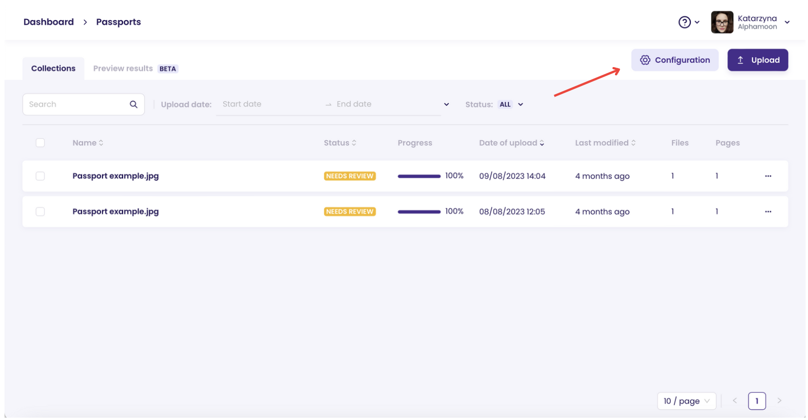 After you create your process and upload your documents, click the “**Configuration**” button in the Queue view.